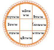 การตั้งชื่อนั้นให้พิจารณาว่า อักษรใดอยู่ช่องใด ก็เท่ากับตกอยู่ภายใต้อิทธิพลของดวงดาวนั้นโดยตรงเต็มที่ ท่านแบ่งดาวออกเป็น 8 ช่อง เรียกชื่อตามคุณภาพของดวงดาวที่มีอิทธิพลต่อดวงดาวอื่น ใครเกิดวันไหนก็กลายเป็นบริวารของดาวดวงนั้น เรียกว่าดาวนพเคราะห์ประจำวันเกิด มีดาวดวงนั้นเป็นดาวประจำชีพ และเมื่อเรามีดาวดวงใดเป็นดาวประจำชีพแล้ว หากดาวประจำชีพเรามีดาวอื่นที่ส่งผลกระทบให้ดาวของเรา ต้องมัวหมอง อับแสงหรือมืดมนลง เรียกว่าเป็นดาวกาลกิณีของดาวประจำชีพเรา เราจึงต้องหลีกเลี่ยงอักษรที่เป็นบริวารของดาวกาลกิณีของเรา ไม่ให้มีปรากฏอยู่ในชื่อ หรือเกี่ยวพันกับชีวิตของเรานั่นเอง